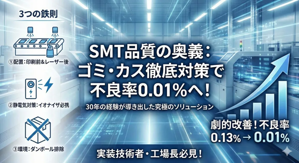 はじめに:品質は「白地(しろじ)」の状態で作られる 基板実装(SMT)に従事して30年。現場で戦う中で確信していることがあります。それは、「実装前の基板表面をいかにクリーンな『白地』に保てるか」が、最終的な品質を決定づけるということです。 今回...