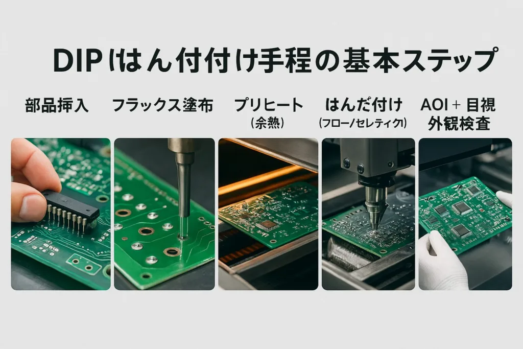 • SMT後に行われるDIPはんだ付け工程の全体像と各ステップの意味