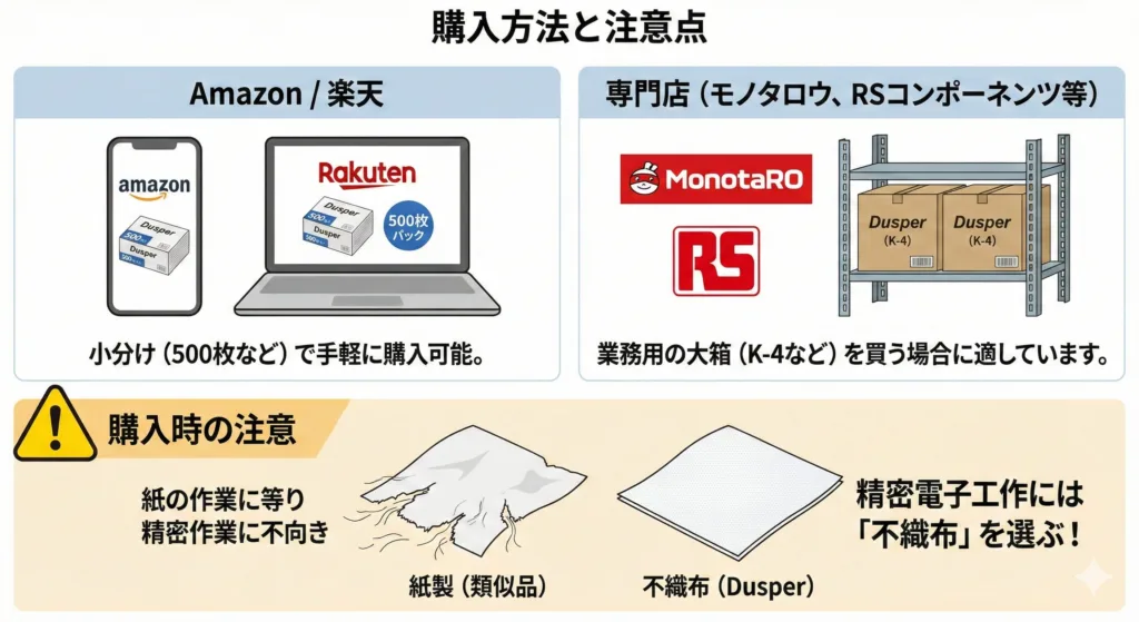 本記事では、プロの現場でも愛用される高機能クリーニングウエス**「Dusper(ダスパー)」**について徹底解説します。ティッシュや普通の布とは違う、その圧倒的な実力と正しい使い方を知れば、あなたの電子工作のクオリティは劇的に向上します。