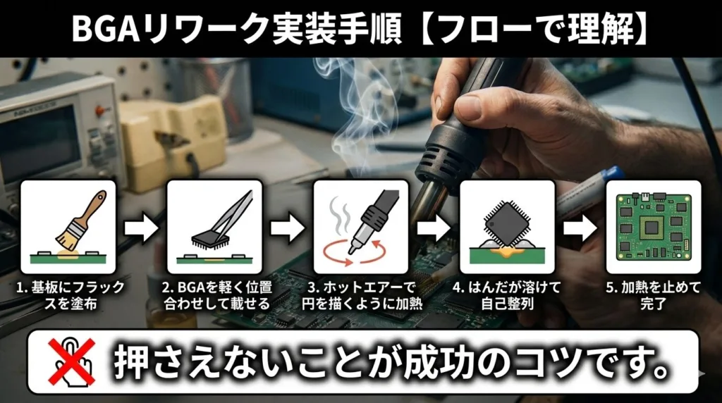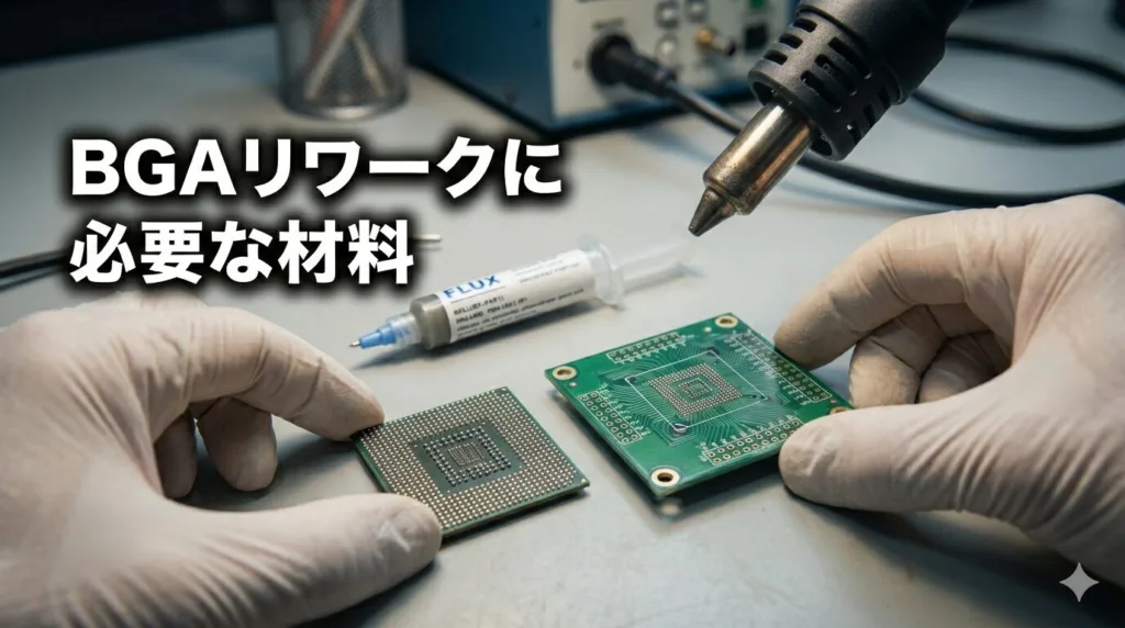 電子工作でのBGAリワークは、意外なほど少ない材料 で実施できます。