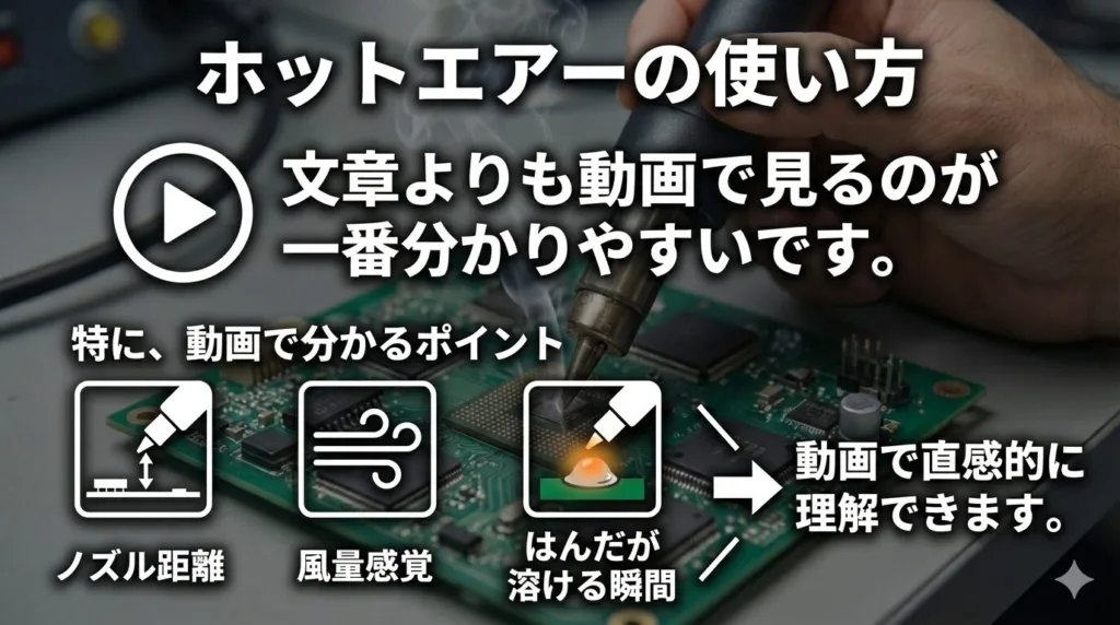 電子工作であれば、ホットエアーとフラックスだけで十分対応可能 です。