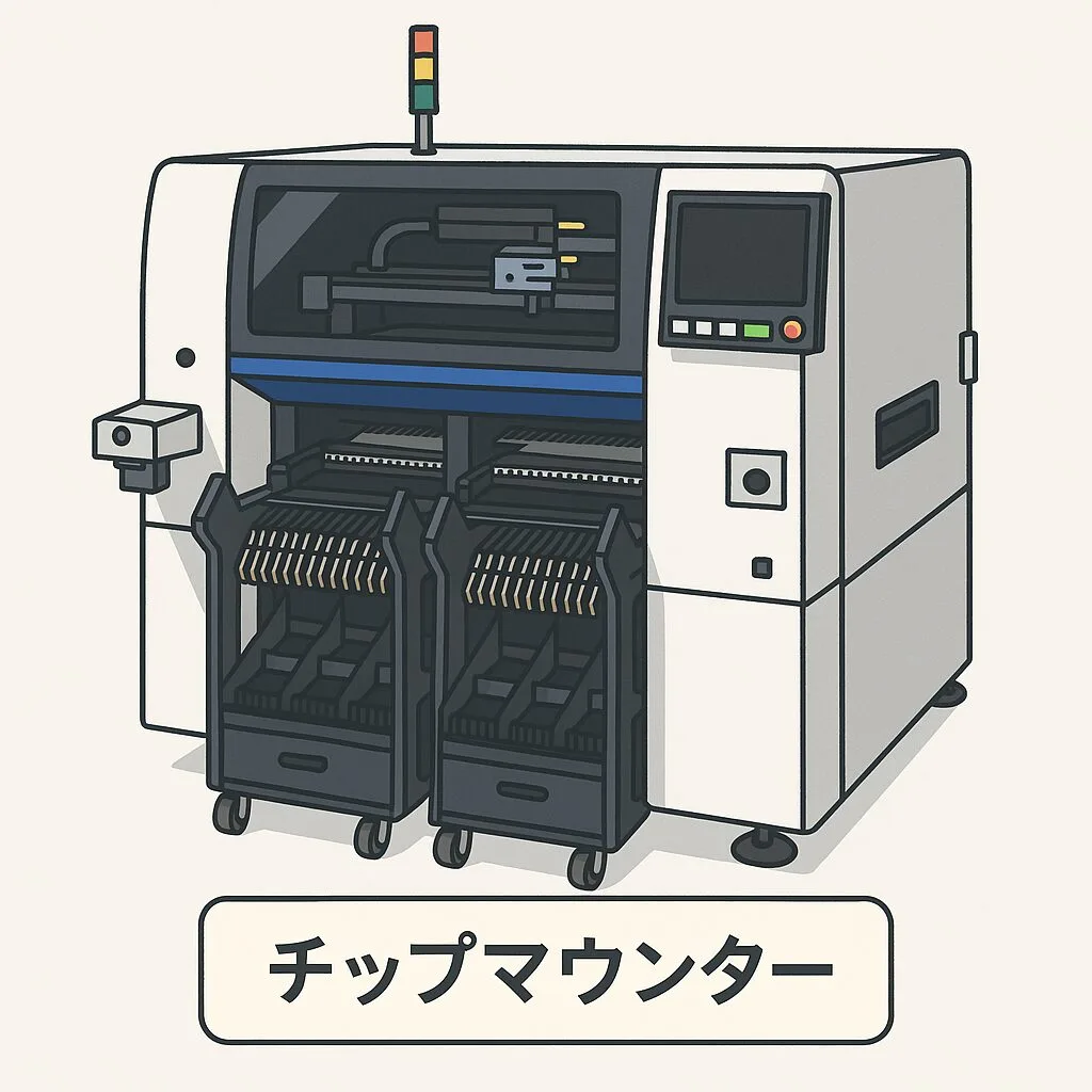 チップマウンターで電子部品を高速・高精度に実装。日本メーカーが世界シェアの8割を占めています。