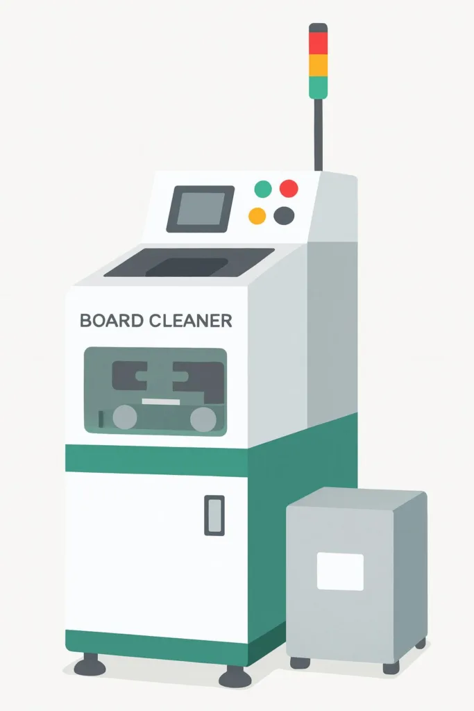 プリント基板表面に付着するゴミや埃を除去します。異物は、はんだ不良の原因になるため、印刷前に必ずクリーニングが必要です。