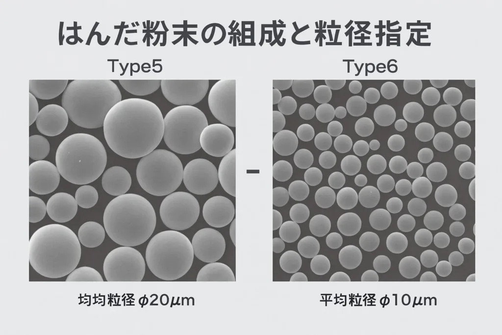 一方、はんだ粉末はユーザー側で組成や粒径(メッシュサイズ)を指定可能です。