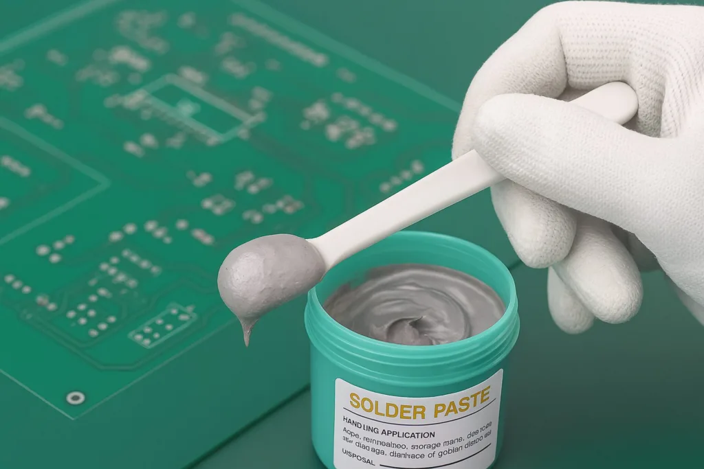 クリームはんだとは、はんだ粉末とフラックスを混合したペースト状のはんだ材料です。