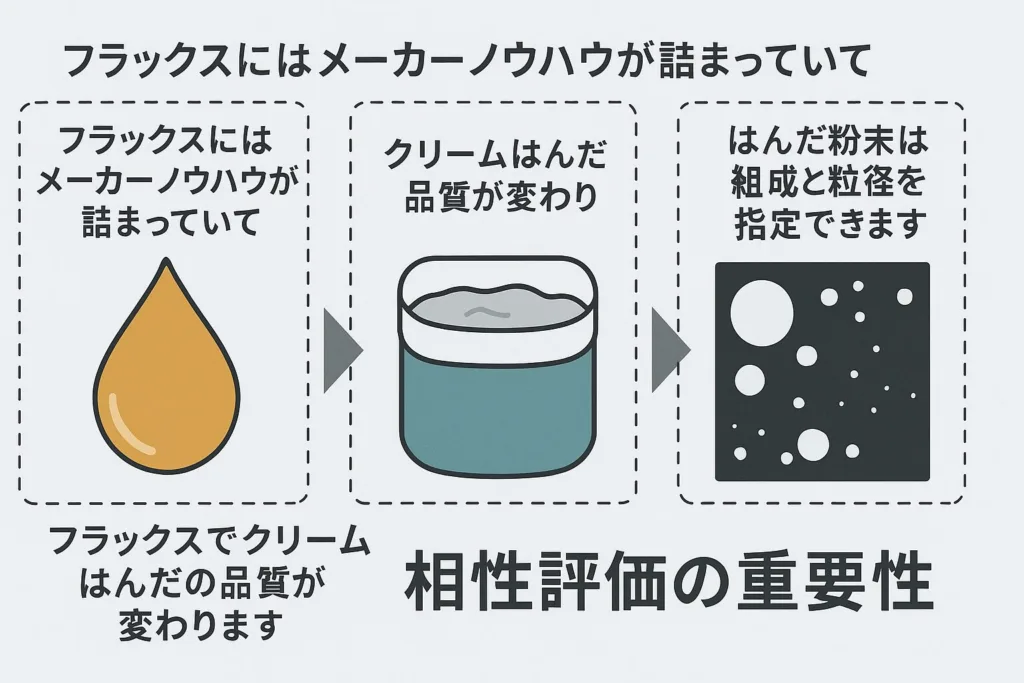 そして、このフラックスこそがメーカー独自のノウハウが凝縮された核心部分です。