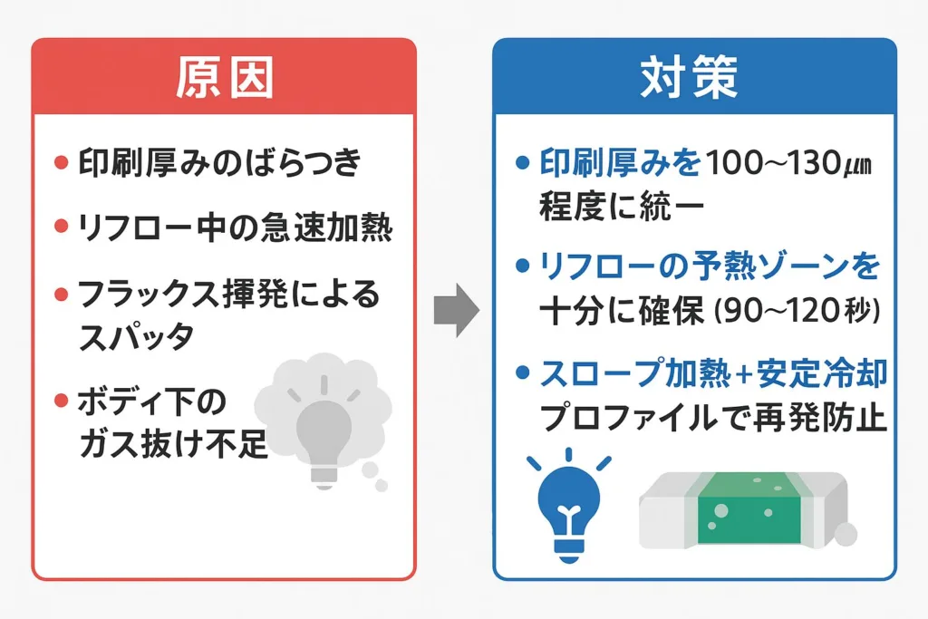 • 湿度が高すぎると吸湿し、ボイドやスパッタのリスクが増加。